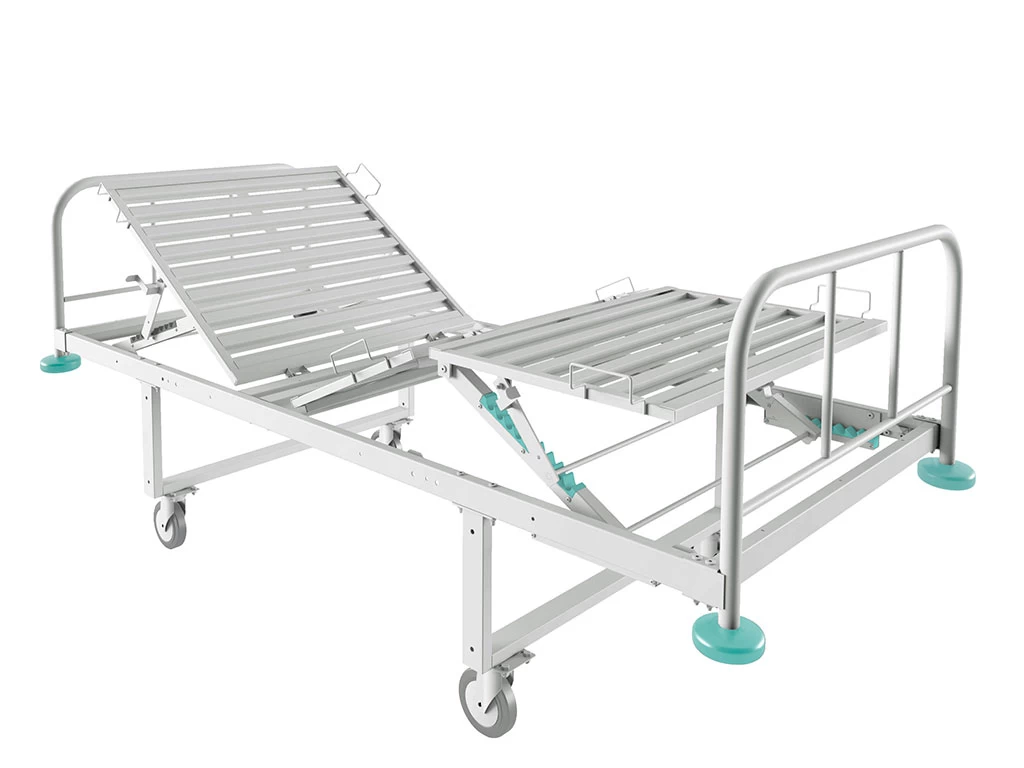 Главная особенность модели КМ-03 в сравнении с обычными медицинскими кроватями – наличие трёх секций с изменяемым углом наклона. Такое конструктивное решение позволяет не только подстроить ложе кровати под положение пациента и обеспечить ему наиболее комфортные условия, но и ощутимо облегчить работу медперсонала.